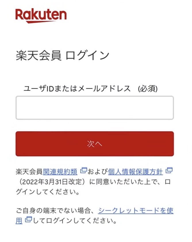楽天のログイン画面が表示されるので、自身の楽天IDとパスワードでログインします。