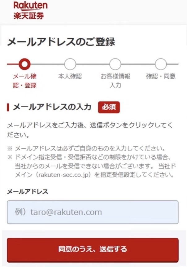 メールアドレスを入力し、「同意のうえ、送信する」をタップします。
