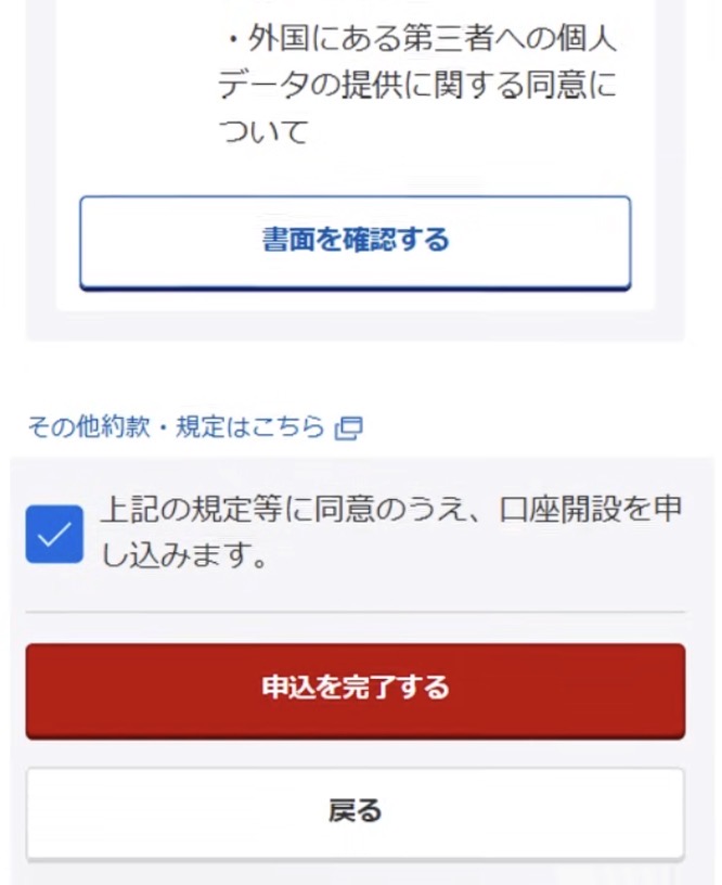 重要事項書類を確認し、同意ボタンにチェックのうえ「申込を完了する」をタップします。